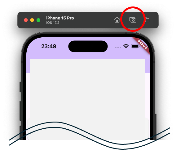 シミュレータの上にあるバーのスクショアイコンをクリックする(赤丸)