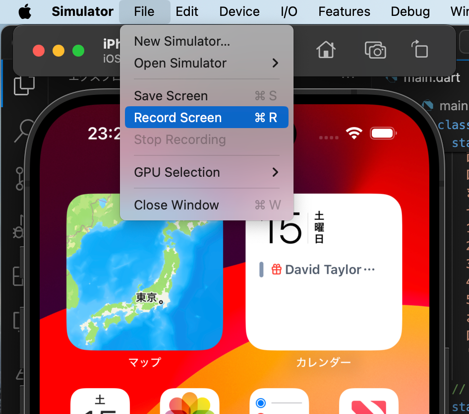 | シミュレータの中身だけの動画 | メニュー[File]-[Record Screen] OR command + R |