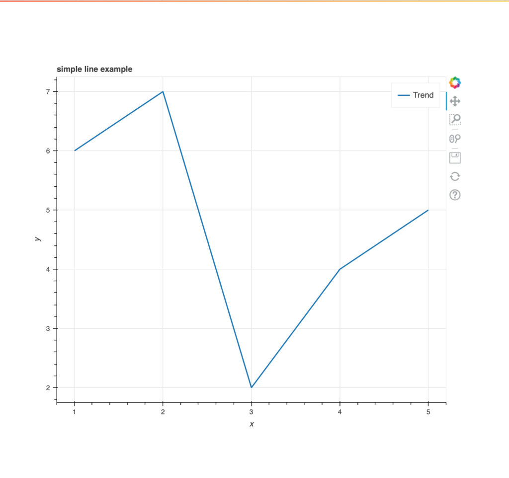 このコードでは、Bokehを使用してシンプルな折れ線グラフを表示しています。