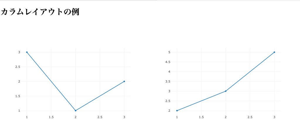 Dashでは、html.Divを使ってレイアウトを自由にカスタマイズできます。複数のカラムや行を作成して、要素を横並びに配置する例を見てみましょう。