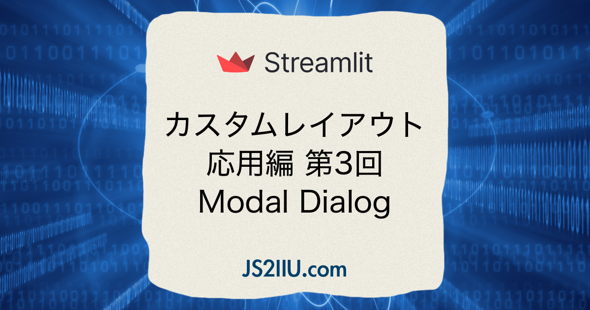 こんにちは、JS2IIUです。今回はStreamlitのレイアウトで使えるmodal Dialogを紹介していきます。Modal Dialogで洗練されたUI制御が可能になります。今回もよろしくお願いします。