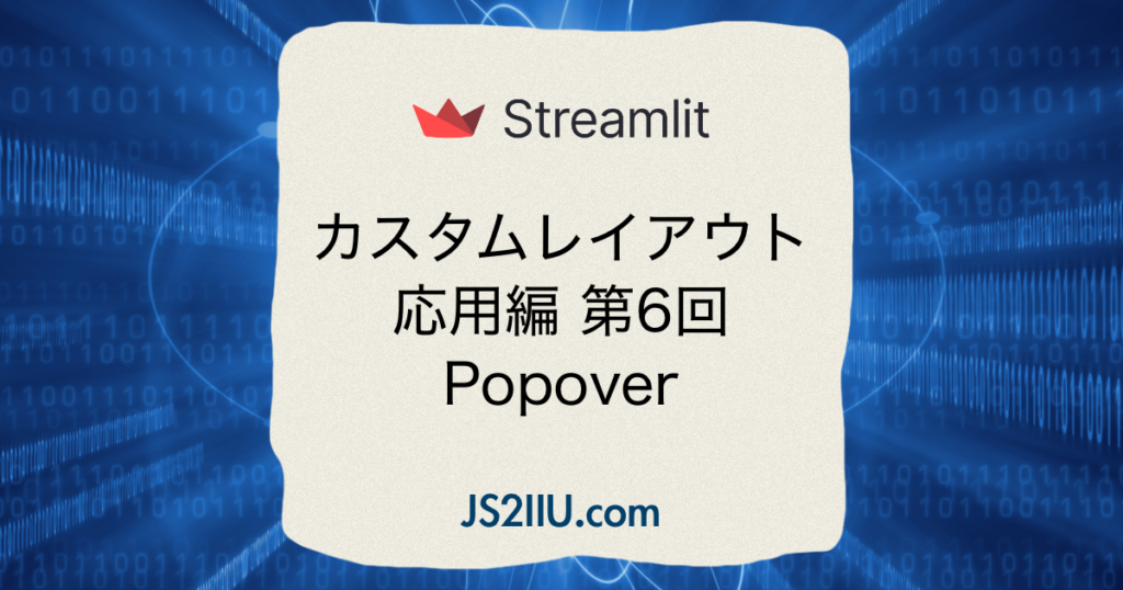 こんにちは、JS2IIUです。Streamlitでツールチップのような表示ができるPopoverについて説明していきます。よろしくお願いします。