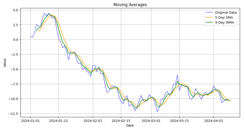 この記事では、Pandasを使用して時系列データに対する移動平均を計算する方法を紹介しました。単純移動平均はノイズの平滑化に役立ち、加重移動平均はより最近のデータに重きを置いたトレンド分析が可能です。移動平均は、株式や気象データなど多くの分野でデータの分析やモデリングに広く応用されています。ぜひご自身のデータ分析でも活用してください!