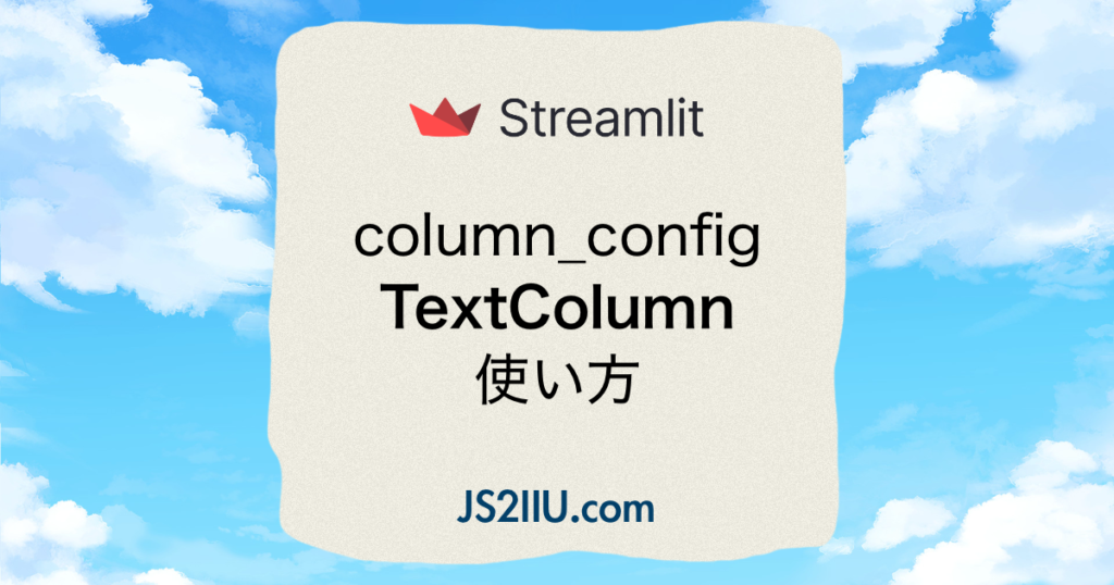 データフレーム内にテキストデータが含まれている場合、その列をどのように表示すればより分かりやすくなるでしょうか?Streamlitのst.column_config.TextColumnを使うと、列のラベルやヘルプテキストの設定、入力制限の追加など、テキスト列を柔軟にカスタマイズできます。本記事では、このクラスの基本機能と実際の使用例を丁寧に解説します。