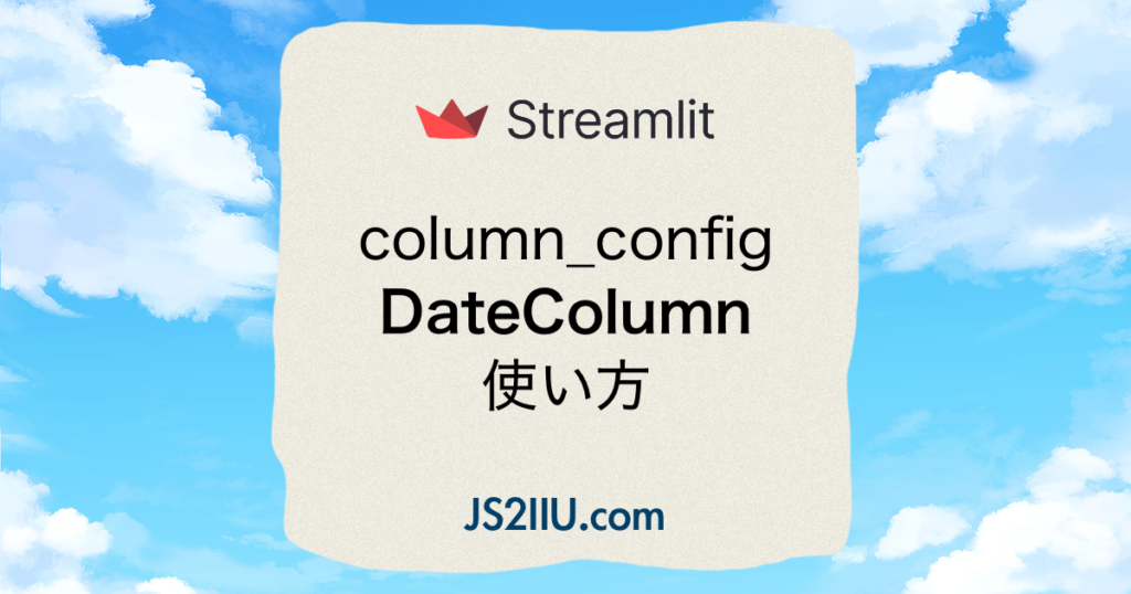 こんにちは、JS2IIUです。StreamlitでDataFrameを表示する際に日付選択の機能を使えます。日付に関する機能を提供するst.column_config.DateColumnについて紹介します。今回もよろしくお願いします。