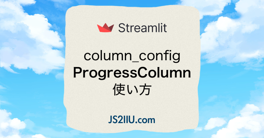 StreamlitでDataFrameを表示する際にセルの中にプログレスバーを表示する機能を提供するst.column_config.ProgressColumnについて紹介します。スコアや進捗状況など、ゴールに対してどこまで近づいているかをグラフィカルに表示します。今回もよろしくお願いします。