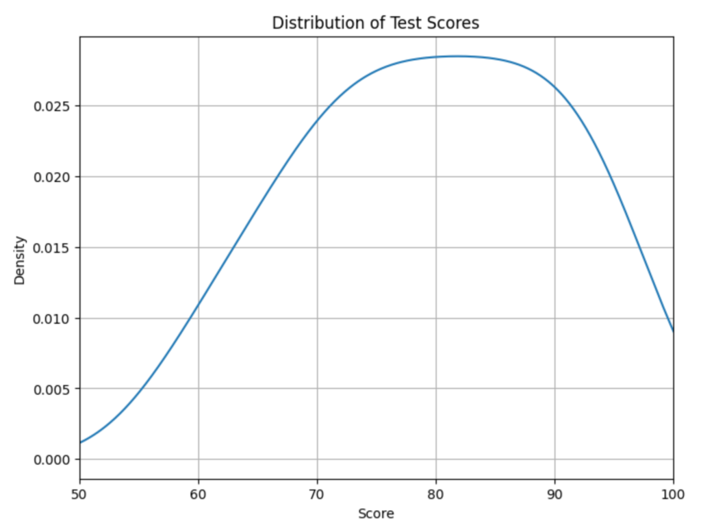 'Test Scores': [70, 80, 90, 60, 75, 85, 95, 65, 70, 80, 90, 75, 85, 95]