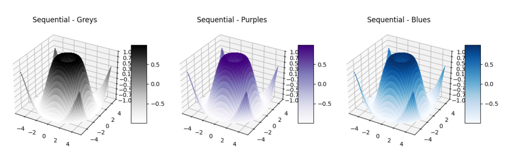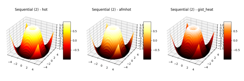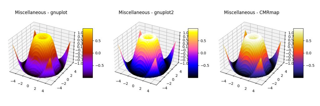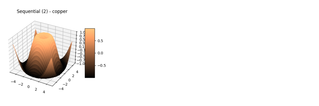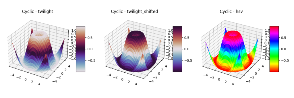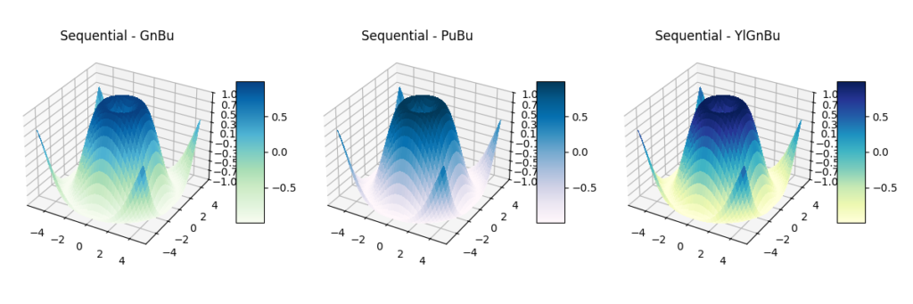 Matplotlibでグラフを作成する際、データの値を色で表現したい場合があります。そんな時に役立つのが colormap です。colormapは、数値と色を対応づけるもので、データの分布や変化を視覚的に表現するのに非常に役立ちます。今回は3D表示にさまざまなcolormapを適用してみます。