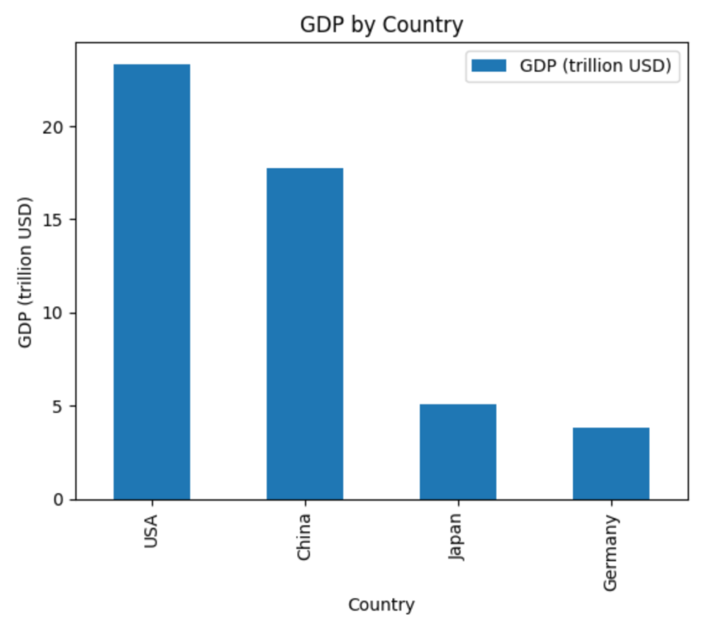 各国のGDPを棒グラフで比較することで、経済規模の違いを視覚的に把握できます。