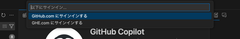 VSCodeの上部に “GitHub.comにサインインする” と表示されるので、クリックします。