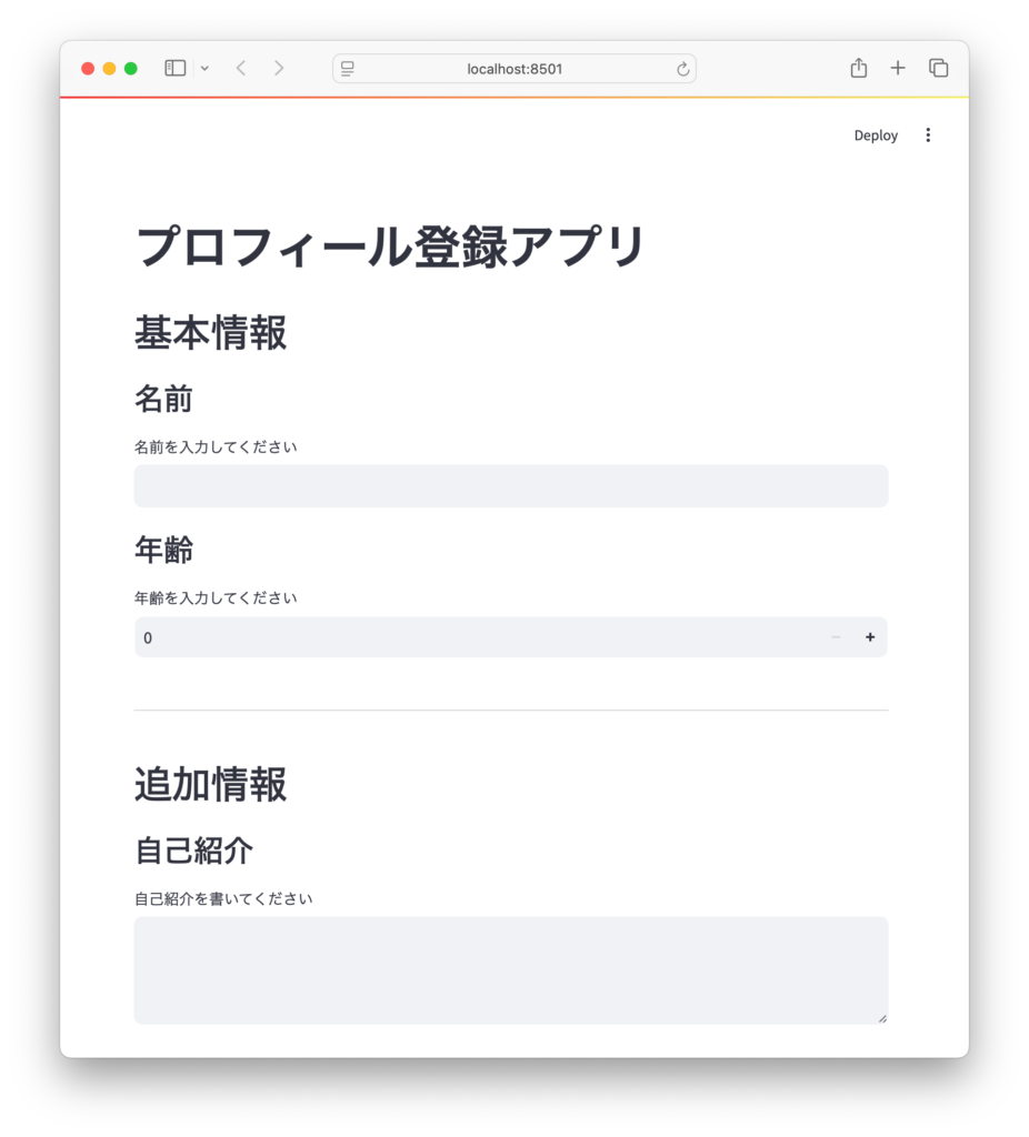 st.title("プロフィール登録アプリ")
