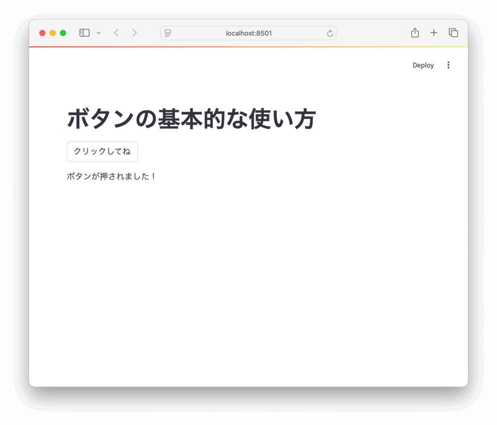 ここでは、最もシンプルな st.button の使い方を紹介します。