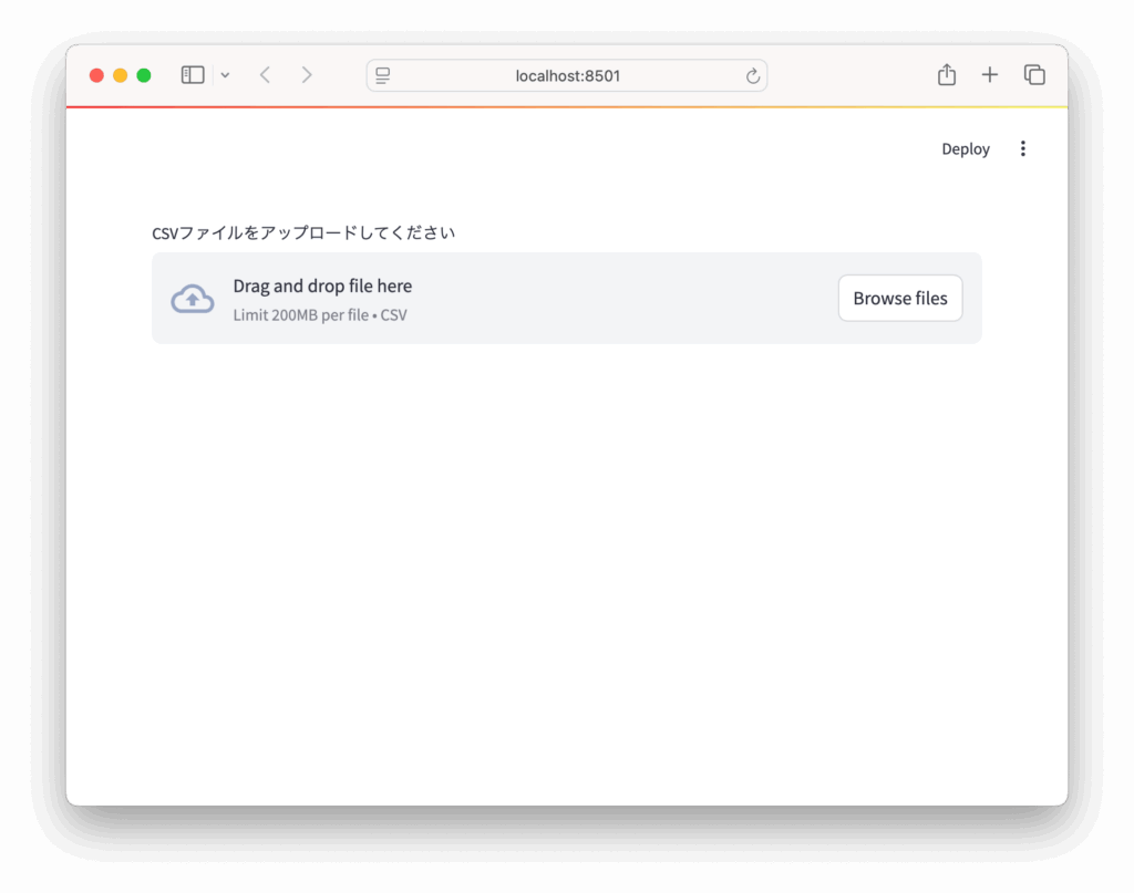 まずは、CSVファイルをアップロードして、その内容を画面に表示するシンプルなアプリを作ってみましょう。