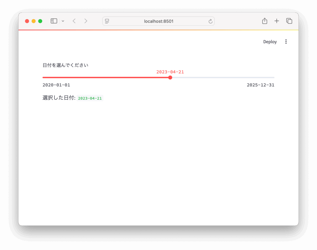 • st.sliderは数値・日付・時間を直感的に選べる便利なウィジェット