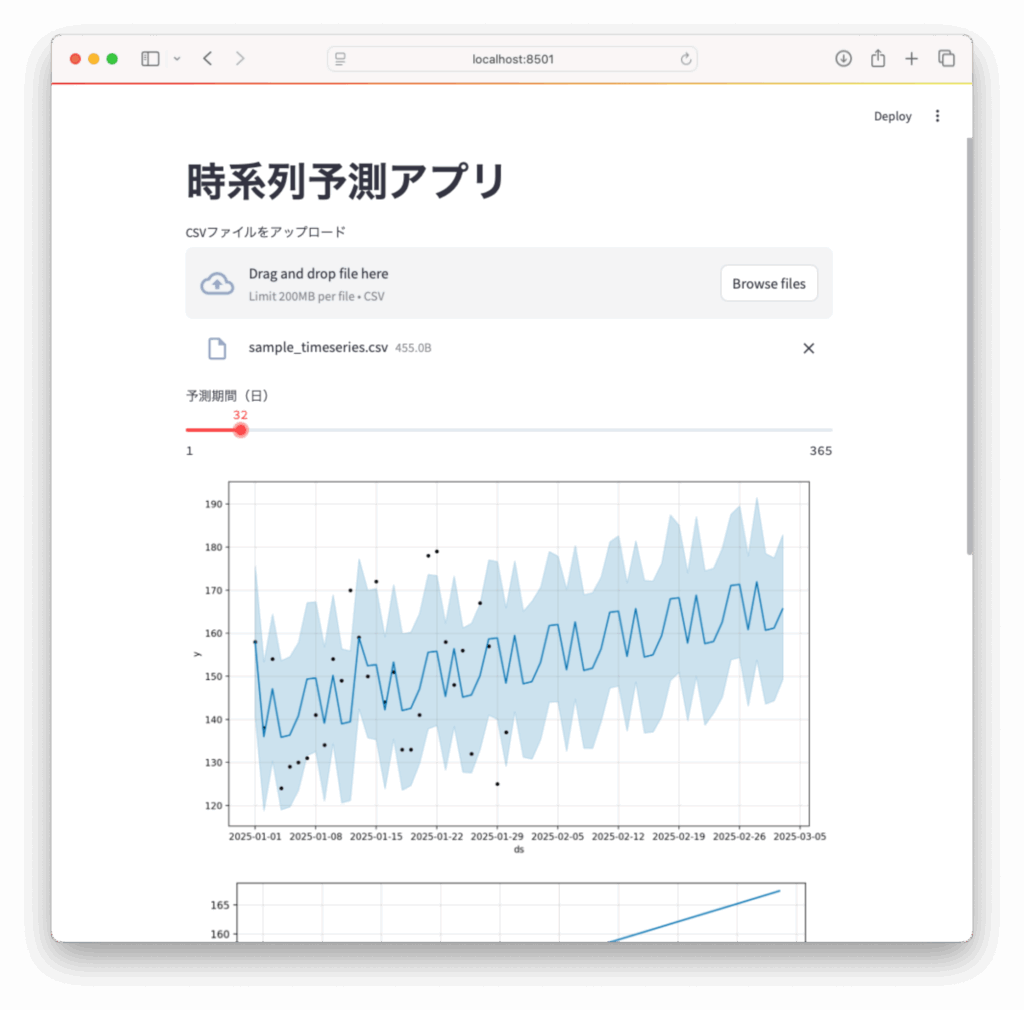 本記事は、Pythonで時系列データを予測するためのライブラリ「Prophet」を使って、デーモアプリをStreamlitで作成する手順を解説します。