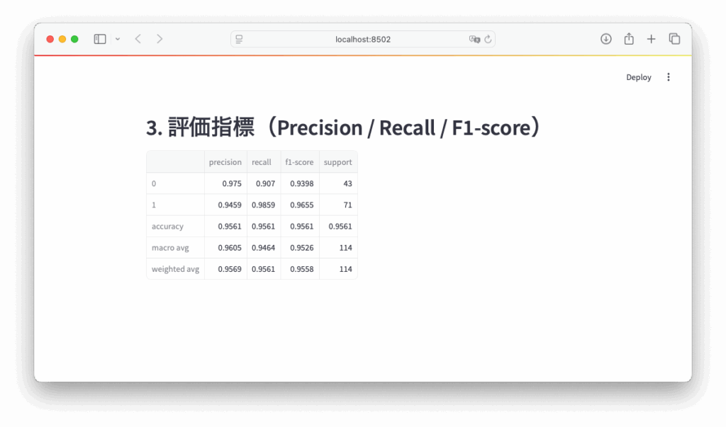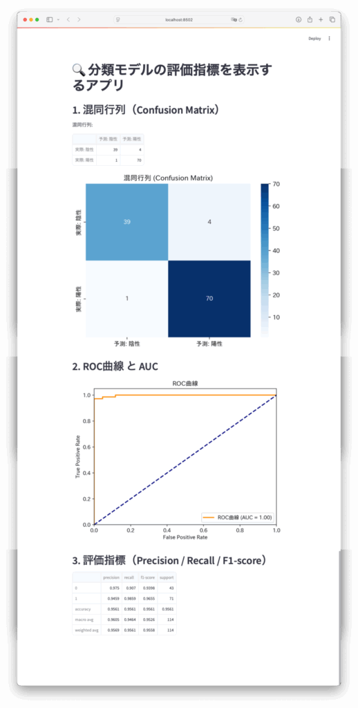 【Streamlit】モデルの評価指標を分かりやすく表示