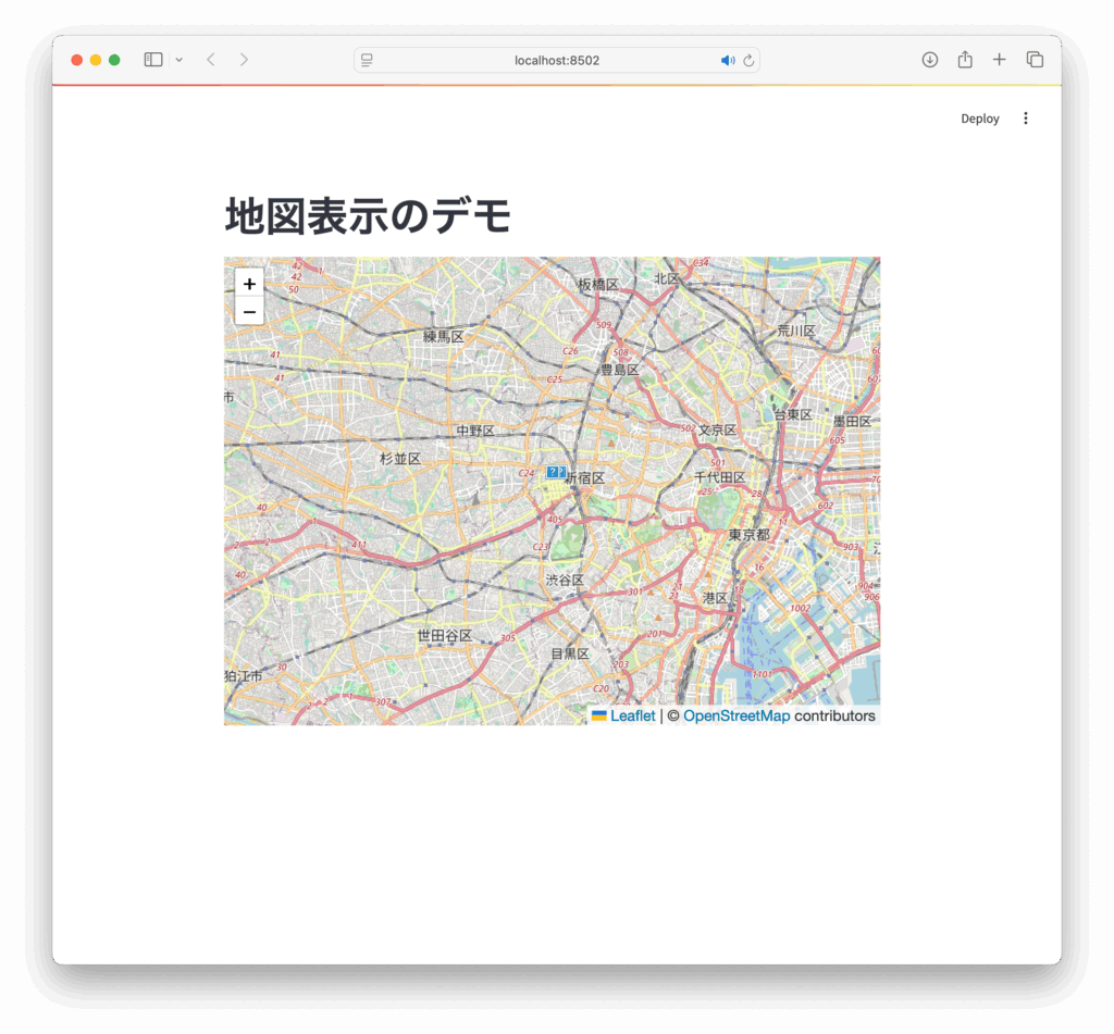 地図表示を簡単に組み込みたい場合、foliumライブラリと連携できる streamlit-folium が非常に便利です。
