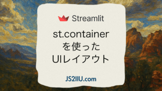 Streamlit 【Streamlit】高度なレイアウト:st.containerの使い方と実践例 こんにちは、JS2IIUです。Streamlitでより複雑なUI構造を作るためのコンテナの利用方法について見ていきます。思い通りのレイアウトでUIを作成していきましょう。今回もよろしくお願いします。はじめにStreamlit は、簡単に Web アプリを作成できる Python ライブラリとして人気... 2025/05/19 Streamlit