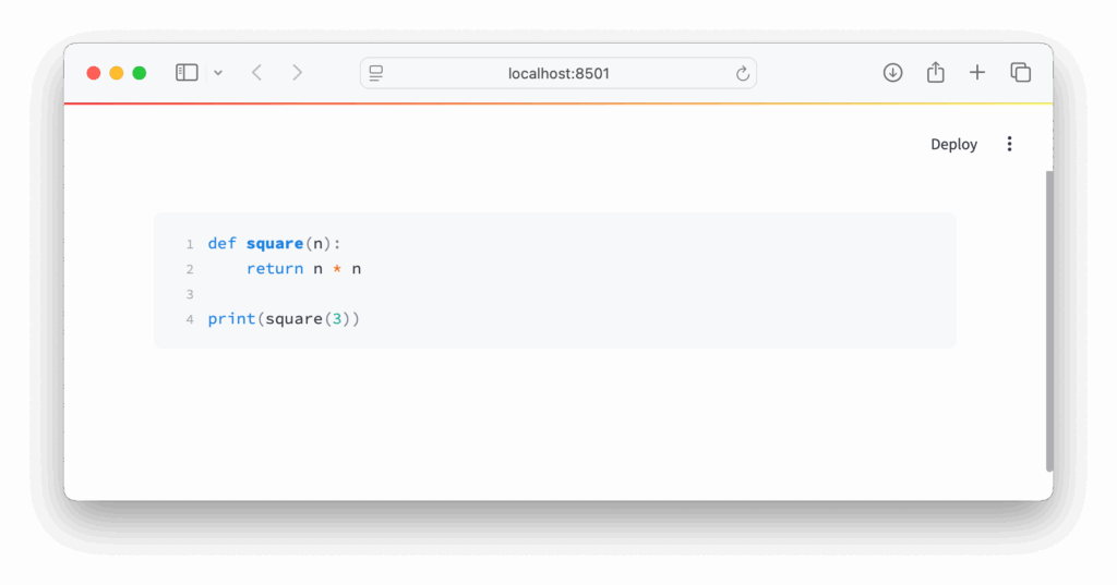 st.code('print("Hello, Streamlit!")', language='python')