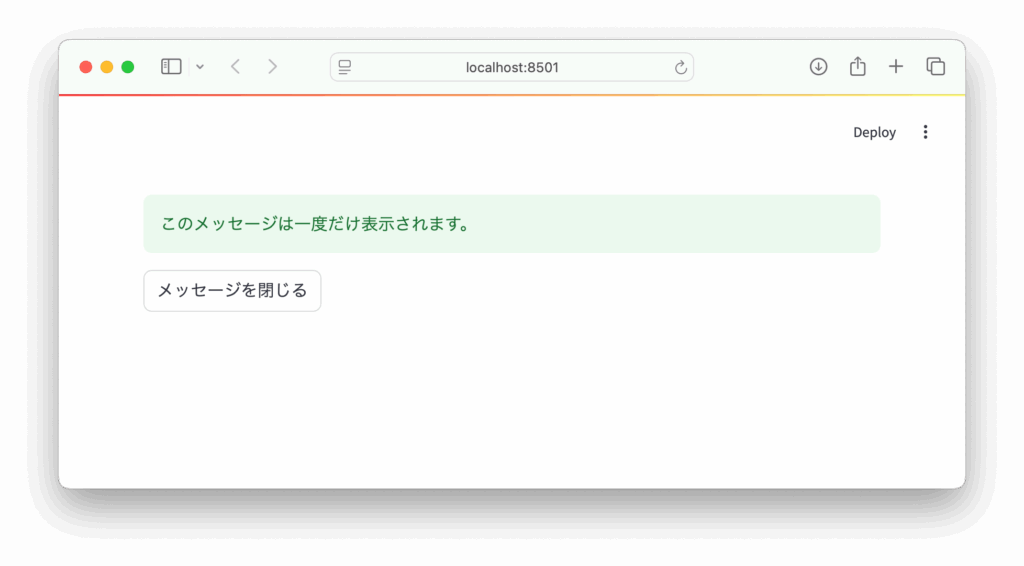 Streamlit を使って Web アプリを作成していると、「一度だけ表示したいメッセージ」や「ボタンを押したときだけ表示される詳細画面」など、一時的な UI の状態を制御したい場面がよくあります。