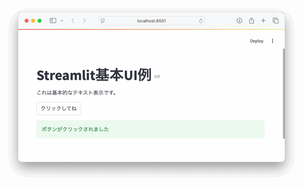 Streamlitには、ボタン・スライダー・テキスト入力など様々なUI部品(コンポーネント)が標準装備されています。