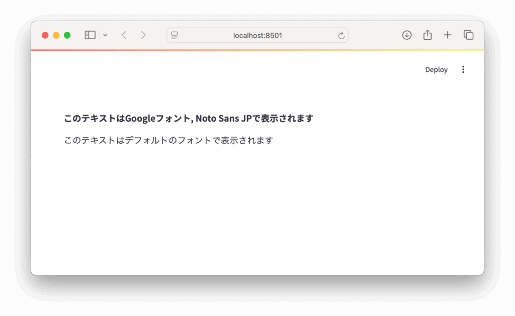 このコードを実行すると、custom-fontタグで指定した範囲のフォントがNoto Sans JPに変わり、見た目が洗練されます。