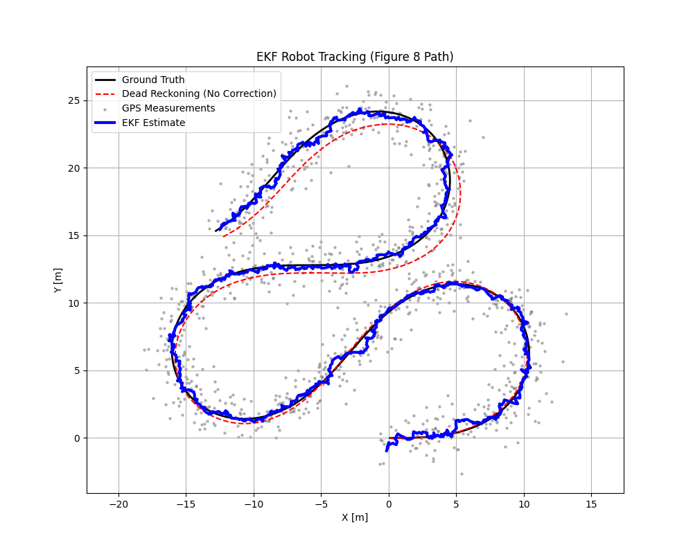 plt.title("EKF Robot Tracking (Figure 8 Path)")