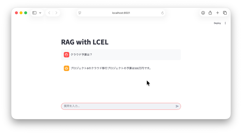 - 入力: “Streamlitとは?”