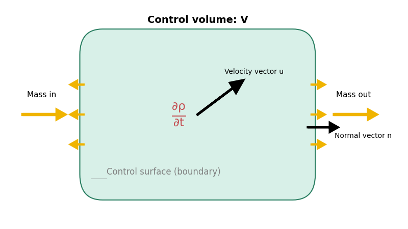 コントロールボリューム内の運動量の変化を数式で表すと、以下のようになります。