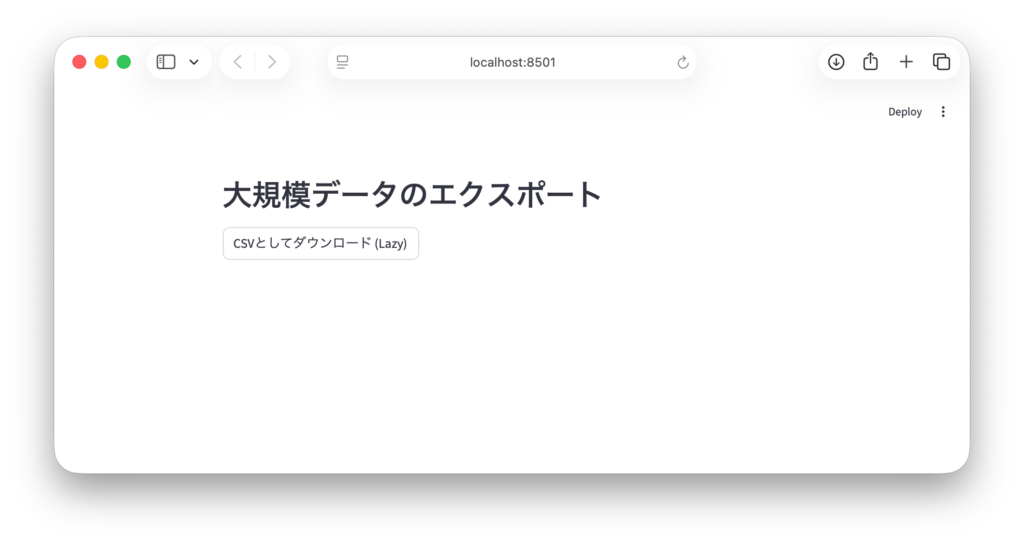遅延評価を行うと、ボタンをクリックしてからダウンロードが始まるまでに計算時間がかかります。あまりに処理が重い場合、ユーザーは「ボタンが効いていない」と感じるかもしれません。生成関数の中で st.spinner を使いたいところですが、download_button のコールバック内でのUI更新には制限があるため、あらかじめ「生成には時間がかかります」といった注意書きを添えるなどの工夫が推奨されます。