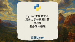 こんにちはJS2IIUです。Pythonで攻略する流体力学シミュレーション連載の第6回です。これまで5回にわたり、質量保存則やナビエ・ストークス方程式といった、流体を支配する「物理法則」と「数学的表現」について学んできました。しかし、これらの方程式には大きな問題があります。それは、微分演算子(\(\...