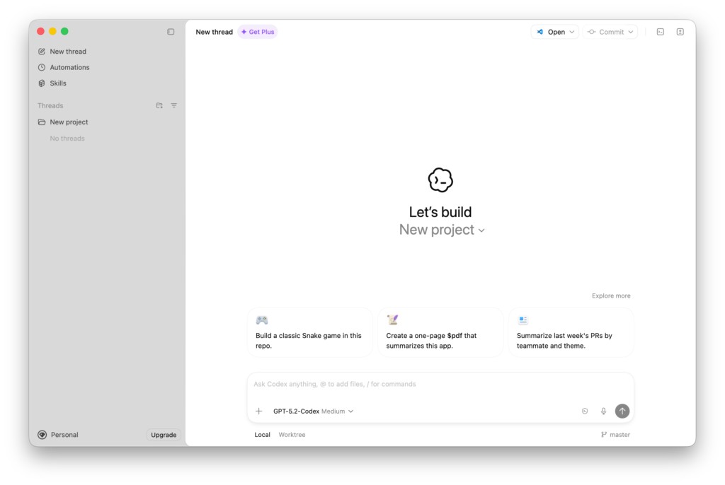 Codex Appのインストールから立ち上げまで簡単に紹介しました。すでにClaude CodeやGitHub Copilot、Antigravityなどを使っている方が多いと思います。それぞれ特徴があります。Codex AppはAutomationsやSkillsを構築していくのに便利そうな印象です。ツールを跨いだコーディングも可能です26年3月までは無料プランでも体験できるので、まずは触って特徴を体感してみましょう。