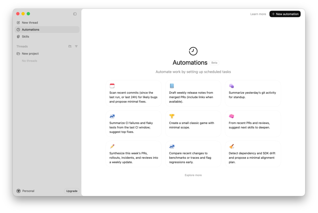 Automations の中で使うことで、例えば毎日決まった情報収集 → 分析 → レポート生成といった複雑な流れも Codex が自動で完遂できるようになります。